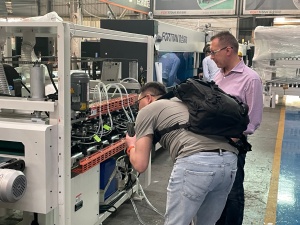 Anschließend ging die Kundengruppe tief in die Produktionswerkstatt und inspizierte jede wichtige Verbindung der Geräteherstellung entlang der Produktionslinie „Präzisionsverarbeitung von Rohstoffen – Montage von Kernkomponenten – Fehlerbehebung und Inspektion der gesamten Maschine – Alterungstest des fertigen Produkts“. Die Delegation konzentrierte sich auf Details wie den „extra schweren Stahlträgerrahmen“, der in den Maschinenkörper übernommen wurde, die „umfassende Auswahl an Airtac-Komponenten“ und das „saubere und aufgeräumte Kabelführungsdesign“ und lobte das in der Werkstatt implementierte digitale Qualitätsrückverfolgbarkeitssystem und die strengen Fabrikinspektionsstandards in hohem Maße. Der Kunde brachte vor Ort eine Reihe individueller Anforderungen vor, und das technische Team reagierte sofort und bot maßgeschneiderte Lösungen in Kombination mit den Vorteilen des modularen Aufbaus der Ausrüstung, wodurch die Bedenken des Kunden hinsichtlich der Zusammenarbeit beseitigt wurden.